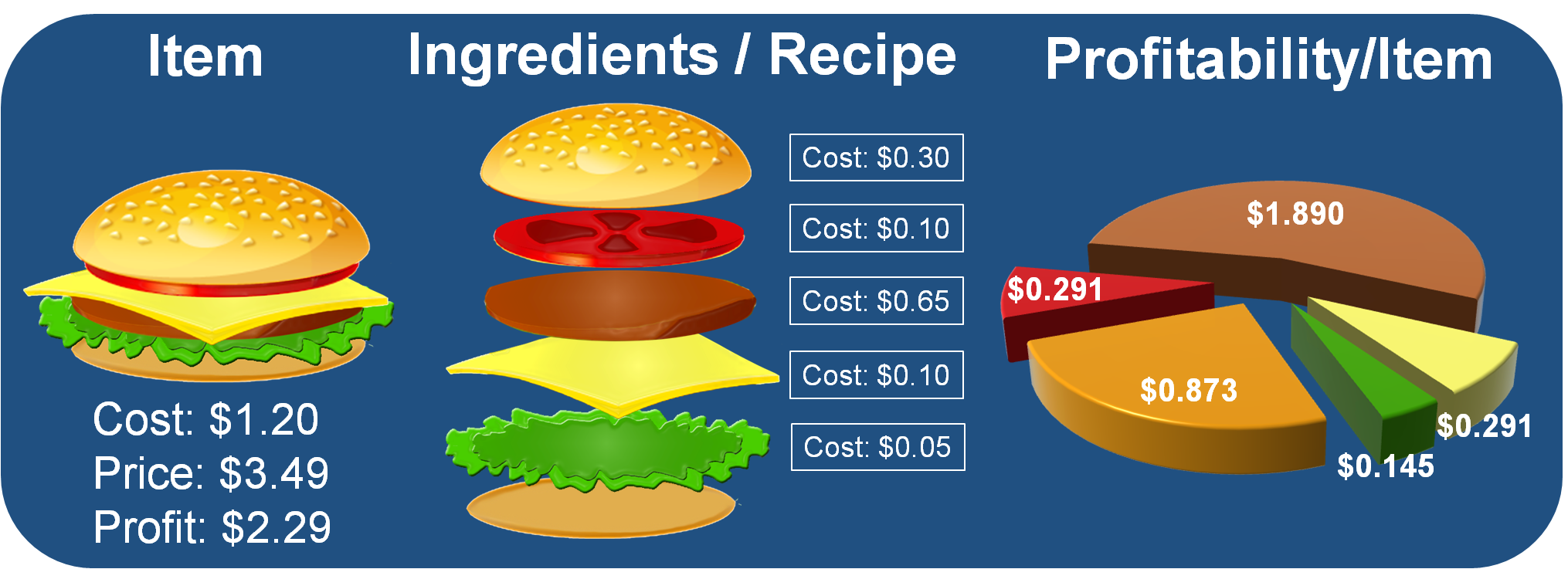 The CDB can help you avoid typical foodservice pitfalls by providing access to the detail you need. The CDB helps you analyze the costs of waste, spoilage, or theft. In addition, it lets you adjust ingredient quantities, add and subtract ingredients, and decide whether (for example) adding cilantro or flavored creamers actually increases your sales and profitability. As a result, you can move forward with more confidence knowing your retail prices will meet your expected margins.